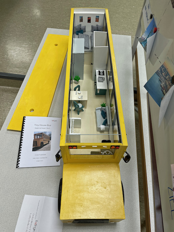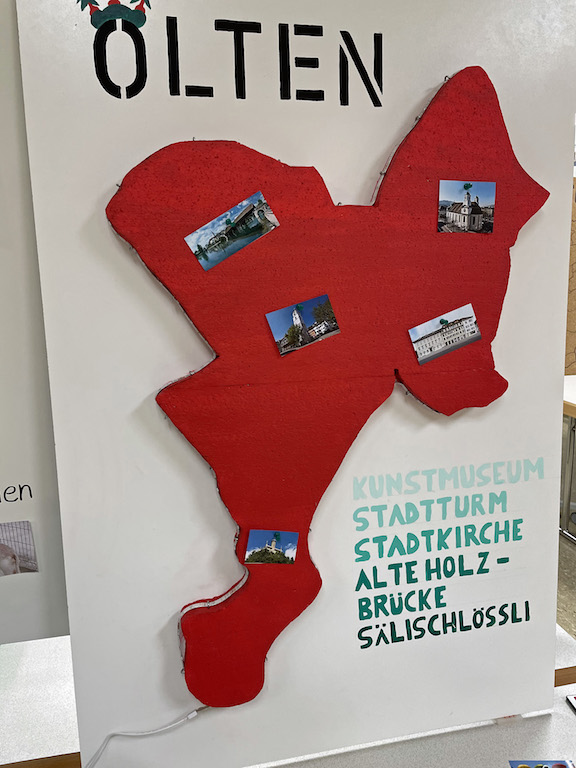 Die Ausstellung beeindruckte schon alleine durch die Vielfalt der bearbeiteten Themen. So entstanden beispielsweise ein Bienenhotel zum Thema „Natur ist wichtig“, zwei Ruhebänkli zum Thema „Wanderwege der Schweiz“, ein Clipping-Stand zum Thema „Braunvieh-Zucht“, ein Modell eines amerikanischen Schulbusses zum Thema „Schulbus/Camping“ oder auch eine Collage Buechehof Lostorf zum Thema „Trisomie 21“. Das übergeordnete Projektthema TARGET wurde spürbar, die kreative Auseinandersetzung der Schülerinnen und Schüler mit dem übergeordneten und wortspielerischen Projektthema beeindruckte.