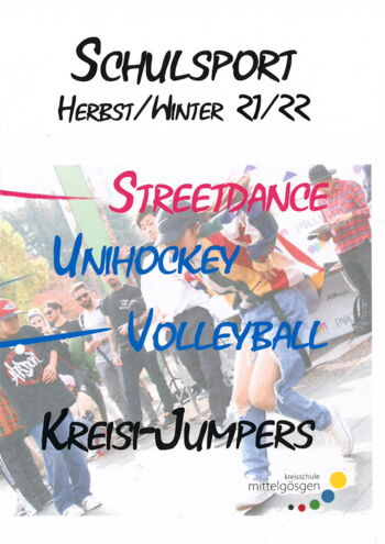 Im Herbst/Winter 2021/2022 bietet die Kreisschule Mittelgösgen drei Kurse im freiwilligen Schulsport an. Die Kurse starten nach den Herbstferien und dauern bis in den Frühling. In dieser Zeit finden mindestens 15 Trainings statt. Im Schulsport wird zwar durchaus ernsthaft Sport betrieben, das Spielerische steht aber ganz klar im Vordergrund. So können im Verlauf der Schulzeit diverse Sportarten ausprobiert werden, die später in einem Sportverein weiter betrieben werden können. Weiter bietet der freiwillige Schulsport Gelegenheit, mit Kolleginnen und Kollegen anderer Stufen und Jahrgänge gemeinsam Sport zu treiben.