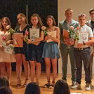 Ein Schüler erfuhr durch Brigitte Staub eine besondere Erwähnung und Ehrung. Als Gestalter der Umschlagseiten des Jahresberichts hat sich Gentian Asani intensiv mit der dominierenden Schuljahresthematik auseinandergesetzt und darf zurecht stolz auf das Resultat sein.