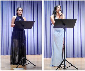 Dazwischen erfreuten Zeynep Karayel und Fiona Straumann mit den Liedern Smooth operator von Shade und Slipping through my Fingers von ABBA (sh. Bild). Sie erhielten dafür den verdient tosenden Applaus.