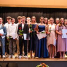 Zur eigentlichen Zeugnisübergabe wurden die Schülerinnen und Schüler klassenweise zusammen mit ihren Klassenlehrpersonen auf die Bühne des Casinosaals gebeten, wo sie aus den Händen von Thomas A. Müller zusammen mit dem Zeugnis eine Rose erhielten. Die Zeugnisübergabe wurde durch die Schüler Antonio Tokic und Frieda Steiner musikalisch untermalt.