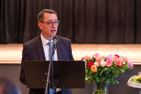 Besondere Aufmerksamkeit erhielt die Ansprache des Einwohnergemeindepräsidenten von Lostorf, Herr Thomas A. Müller. Ausgehend von den Chancen und Risiken der aktuell eingeforderten Digitalisierung mit 1:1-Computing an der Volksschule im Kanton Solothurn stellte Müller fest, dass die heutige Generation von Entscheidungsträgern vor Herausforderungen steht, welche in absehbarer Zeit nicht gelöst werden können. Als Beispiele führte er die kriegerischen Auseinandersetzungen in Osteuropa und im Gaza-Streifen oder auch die Auswirkungen des Klimawandels an. Ergo werden die Probleme durch die nachfolgende Generation gelöst werden müssen. Dazu – so führte Müller aus – werden drei grundlegende Kompetenzen wichtig sein: intellektuelle Kompetenz mit Fähigkeiten in Analytik und Logik, kreative Kompetenz sowie Softskills wie Entscheidungsfreudigkeit, Durchhaltewillen oder Neugier. Das alles wünscht sich Müller von den angehenden Gymnasiasten und Studenten. Müller schloss mit dem Zitat von John A. Shedd: "Ein Schiff im Hafen ist sicher, aber dafür werden Schiffe nicht gebaut" und ermutigte die P-Schülerinnen und -Schüler, ihr Wissen im aktiven Tun und Mittun anzuwenden. Zurecht erntete er für seine Ausführungen einen kräftigen Applaus.