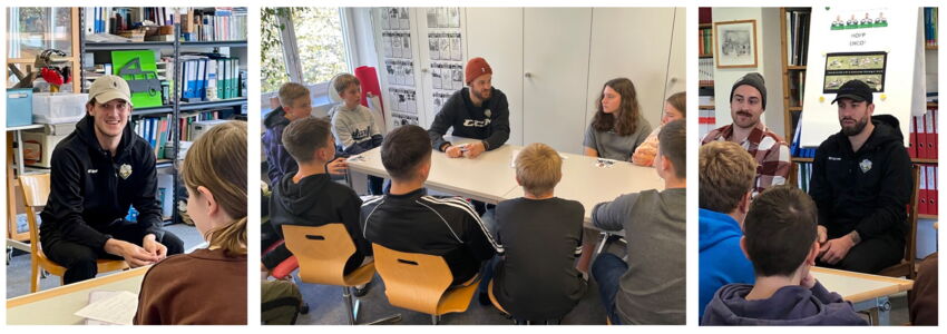 Bei einem gemeinsamen Einstieg erzählten die vier Profisportler aus ihrem Werdegang und ihren bisherigen Stationen. Es war spannend zu erfahren, dass auch die vier Herren ihre Woche nach einem genauen Stunden- respektive Trainingsplan absolvieren. Diese klare Struktur führt dazu, dass man sich optimal auf die Leistung auf dem Eis vorbereiten und so auch Verletzungen minimieren kann. Trotzdem gehört es dazu, dass man sich frühzeitig auf ein Leben nach dem Sport vorbereitet, so haben alle Sportler neben ihrem Leben auf dem Eis eine Ausbildung absolviert und bilden sich auch stets weiter.