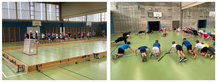 Nach der ersten Lektion im Klassenzimmer stand in der zweiten Lektion Sport in der Turnhalle auf dem Programm. Es herrschte Derby-Time. Dieses Mal hiess der Gegner aber nicht Langenthal, sondern es kam zu einem Spiel zwischen den beiden Klassen, welche jeweils durch zwei Spieler des EHCO verstärkt und gecoacht wurden. Die Intensität, der mit vier Blöcken spielenden Klassen, war enorm, und so endete das Spiel äusserst knapp mit 6:5 für die Klasse E1b. Dass dabei die Regeln auch von den Profis zuweilen recht offen interpretiert wurden, tat der guten Stimmung keinen Abbruch :-). Schlussendlich gab es nur einen wahren Gewinner, und das waren alle Jugendlichen, welche einen unvergesslichen Nachmittag erleben durften.