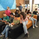 Nach dem Runterladen der App “Actionbound“ bekamen wir eine Menge Quizfragen und Aufgaben aus unterschiedlichen Wissensgebieten aufs Handy. Diese mussten wir im Stile einer Schnitzeljagd lösen. Manchmal mussten wir Orte in der Umgebung des Schulgeländes aufsuchen, Ortschaften von einem Atlas fotografieren oder auch Berufe spielen und Szenen improvisieren.