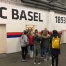 Nach dem Mittagessen fuhren wir nach St. Jakob. Hier wurden wir zu einer Führung durch das St. Jakob-Stadion erwartet. Dabei erfuhren wir alles über die Entstehung und die Geschichte des FC Basels und des „Joggelis“.