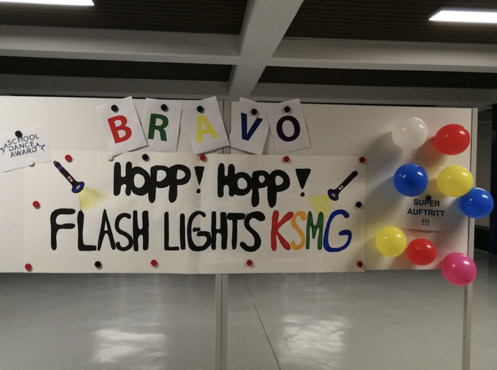 Ein halbes Jahr harte Arbeit steckt in diesem Auftritt. Jeden Montag wurde über den Mittag im Rahmen des Schulsports unter der Leitung von Chiara Grignoli fleissig trainiert. Leider war es aufgrund der Bühnengrösse nicht allen 24 Kursbesuchern möglich am Auftritt teilzunehmen. Diese feiern als Fans im Publikum mit und sind sich sicher – nächstes Jahr wollen auch sie die Bühne rocken – und dann vielleicht als Sieger an die interkantonale Ausscheidung fahren!