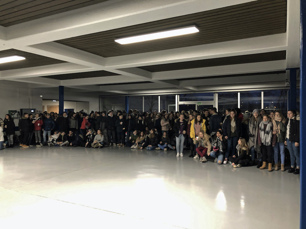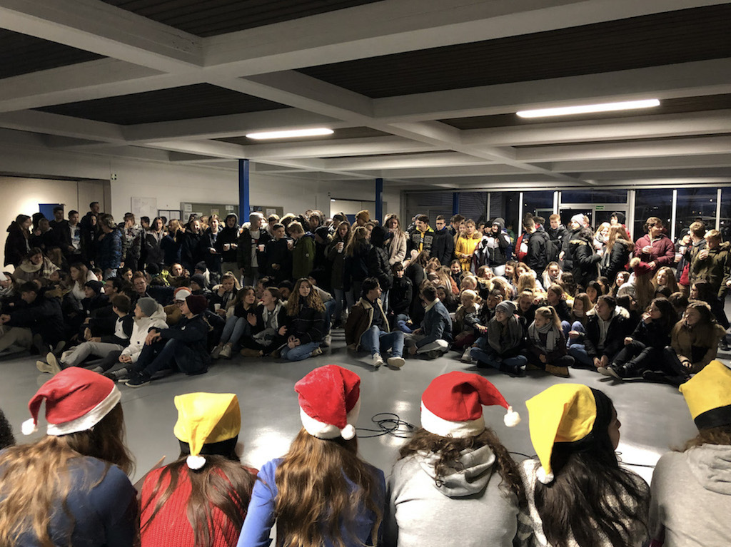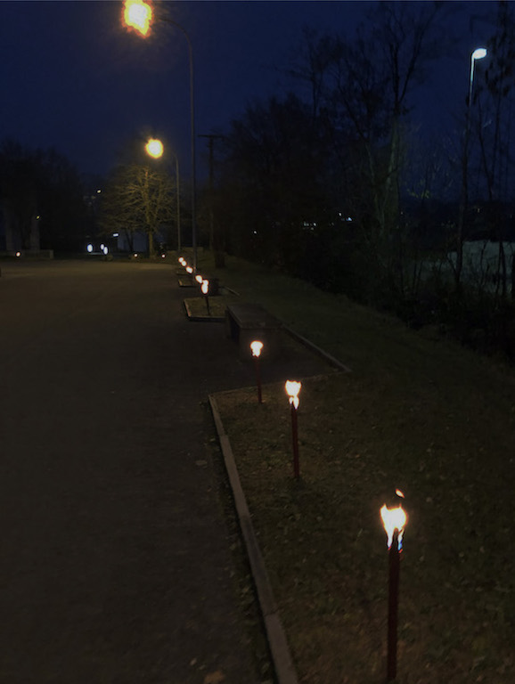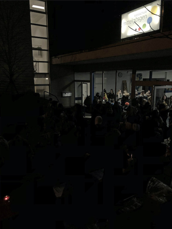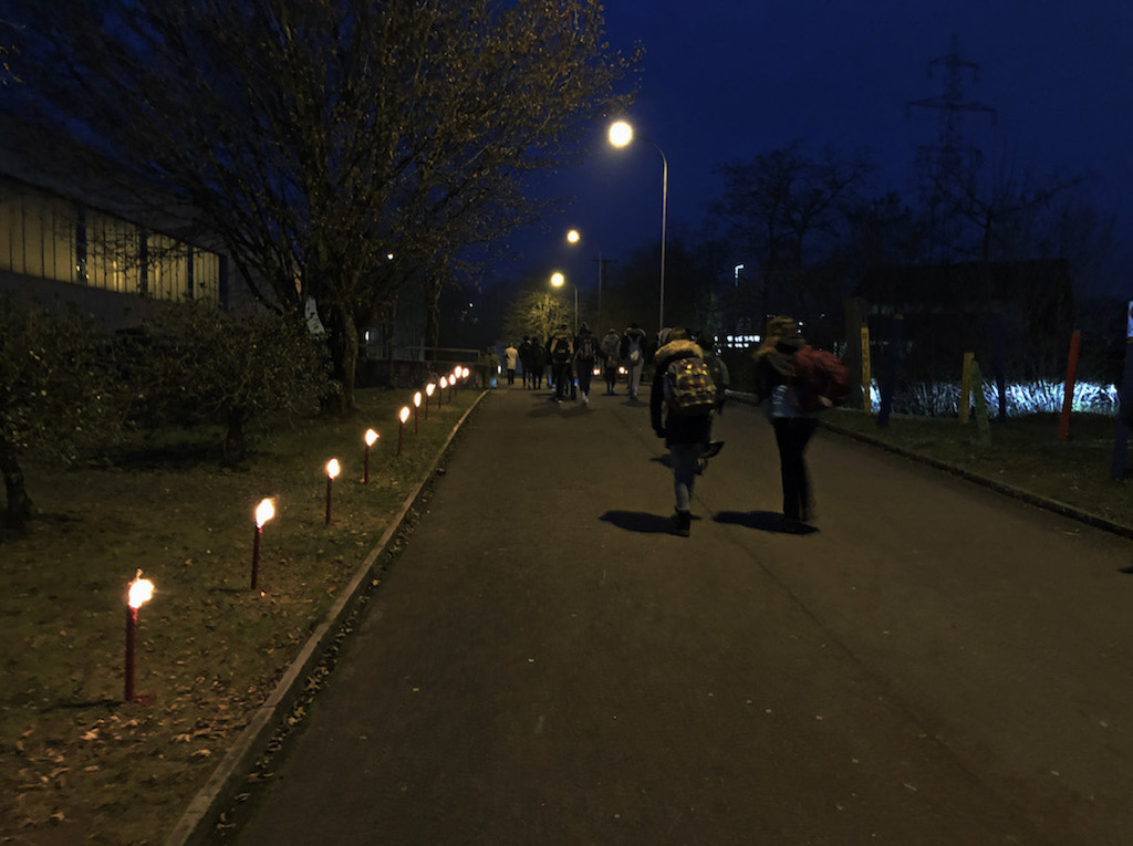 Ohne im Voraus zu informieren, wurden die Schülerinnen und Schüler darum am Morgen des Samichlaustags überrascht. Der Weg vom Veloständer bis zum Haupteingang der Schule war mit Fackellicht beleuchtet und deutete schon darauf hin, dass an diesem Morgen etwas Spezielles sein sollte.