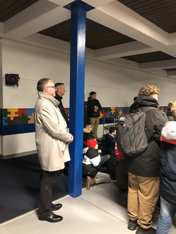 Im Anschluss an den Überraschungsmorgen begaben sich alle in den Unterricht. Zahlreiche Unterrichtslektionen erhielten im Verlauf des Schulmorgens Besuch durch die Herren Ankli und Walter. Im direkten Kontakt mit Lehrpersonen und Schülerinnen und Schülern entstanden viele interessante Gespräche zu aktuellen Unterrichtsthemen: Individualisierung im Sinne des Lehrplans 21, sachgemässe Aufbewahrung von Chemikalien, Einüben von Präsentier-Techniken inklusive Analyse in der Klasse, grafische Sichtbarmachung von mathematischen Brüchen, Aufnehmen und Anwenden von französischen Vokabular zum Nikolaustag, Anwendung von ICT-Mitteln auf mehreren Ebenen, praktische und theoretische Aktivitäten an der Projektarbeit im 9. Schuljahr, individuelle Schritte in der Lehrstellensuche, Einblicke in die Schullaufbahn einzelner Schülerinnen und Schüler bis hin zur moralischen Fragestellung der Gemeinde Güllen aus dem literarischen Werk "Der Besuch der alten Dame" von Friedrich Dürrenmatt.
