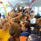 Startschuss am Montagmorgen zur Abschlussreise war der obligate Treffpunkt beim Brunnen am Bahnhof Olten. Schwer bepackt trafen alle Schülerinnen und Schüler pünktlich ein, musste das Gepäck doch den Schlafsack, die Badesachen, Proviant für zwei Tage „Wildnis“ und die persönlichen Sachen enthalten. Nicht alle waren wetterunabhängig ausgerüstet, einige hätten einen feuchte Nacht verbracht, wenn es zum falschen Zeitpunkt zu regnen begonnen hätte. Aber der Optimismus war durchaus gerechtfertigt. Am Bahnhof in Biel hatten wir genau 5 Minuten zum Umsteigen in den Bus, der uns nach Les-Prés-d‘Orvin bringen sollte, die Schüler standen bereits gestiefelt und gespornt an der Zugtüre, bereit zum „Sprint“ zum Bus. Pünktlich waren wir denn auch an Ort und Stelle, wo uns der Bus-Chauffeur jedoch mit rotem Kopf und fuchtelnden Händen empfing. Sein Problem: 4 Gruppen, 2 Reservationen, geschätzte 60 Kinder und ein paar Erwachsene, die alle in „seinen“ Bus einsteigen wollten: Die Rechnung ging für ihn nicht auf. Es gab einige Diskussionen, Telefonate mit deutlichen Worten, mehrere Minuten Verspätung und schliesslich ziemlich beengte Verhältnisse im Bus, als wir schliesslich losfahren konnten. Der Bus-Chauffeur reagierte seine Frustration am Brems- und Gaspedal ab. Der Klassiker „es war so eng, dass man gar nicht umfallen konnte“, kam hier voll zum Tragen, so dass wir an der Endstation in gutem Zustand den Bus verlassen konnten. Der Weg in den „Wilden Westen“ führte uns leicht bergan, wo wir nach nicht ganz einer Stunde die „Bison Ranch“ erreichten. Der Schrecken der Schülerinnen und Schüler, dass der „Wilde Westen“ (fast) ohne Mobile-Netz auskam, war eindrücklich und benötigte einige Sekunden Erholung. Gefasst betraten sie unsere Bleibe in der „Prärie“ und untersuchten die Ausstattung: Trocken-WC, Tipi als Schlafstelle, schwarze Beutel als Dusche, Planwagen als Spielzimmer... Die Bisons waren leider nur von weitem zu sehen. Die Esel entschädigten uns jedoch lauthals für dieses „Manko“. Innert kurzer Zeit waren wir eingerichtet und fühlten uns wohl.
