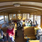 Heute hatten wir ein Riesenprogramm vor uns. Die Rigi ragte gross und eindrucksvoll auf der anderen Seite des Zugersees in den blauen September-Himmel. Sogar die Turmspitze war zu erkennen. In Goldau angekommen, stiegen wir in die älteste Bergbahn Europas um. Der Wagen, in dem wir sassen, war über 100 Jahre alt: die Bänke aus Holz, die Türe fehlte gänzlich, so dass für anhaltend frische Rigi-Frischluft gesorgt war. Über der Tür hing ein Schild „bitte nicht auf den Boden spucken“. Wir wunderten uns, bis wir erfuhren, dass dies noch aus der Zeit des Kautabaks stammte.