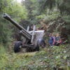 Nach der Ankunft am Bahnhof, durchquerten wir das Städtchen und liefen auf einem steilen Weg zur Festung „Fort 39-45“ hoch, welche wir nach einer knappen Stunde erreichten. Das letzte Wegstück zur Festung war mit grosskalibrigen Festungs-Artillerie-Kanonen bestückt. Beim Fort erwartete uns ein älterer Herr, der Hilfe bei seinem iPhone benötigte. Zwei nette Klassenkameraden halfen ihm bei seinem Problem ;-). Nachdem wir uns warm angezogen hatten, fing die spannende Führung an. Zuerst bekamen wir draussen eine tolle Einführung zum Thema. Der Bunkereingang war mit einer schweren Türe gesichert.