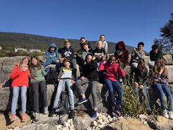Heute standen wir schon um 06.15 Uhr auf, denn wir hatten einen vollbepackten Tag vor uns. Nach dem Frühstück und dem Marsch zum Bahnhof, versuchten wir uns in den übervollen Bus zu pferchen, um nach Vallorbe zu gelangen. Zum Glück stiegen nach knapp fünf Minuten, beim Lycée von Yverdon, fast alle Passagiere aus! Danach fuhren wir im fast leeren Bus nach Vallorbe. Dort liessen wir das Dorf hinter uns und wanderten durch den Wald einen steilen Berghang hinauf. Schliesslich kamen wir beim Fort 39-45 an, wo wir zuerst mal Znüni assen und dann in den tiefen Bunker hinab stiegen. Die Führung durch den Bunker aus dem 2. Weltkrieg war besonders für die Jungs sehr spannend, da sie sich sehr für die Waffen und die Ausrüstung interessierten.