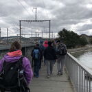 Nach dem Frühstück packten wir unseren Lunch ein und machten uns ready für den Ausflug nach Neuenburg ins Laténium. Dann liefen wir los: dem Wasser entlang, am Spielplatz vorbei, durch den Kreisel, hinunter zum Steg und über die scheppernde Fussgängerbrücke zum Bahnhof. Da warteten wir auf den Zug, der nach wenigen Minuten eintraf. Genau um 9.24 Uhr kamen wir in Neuenburg (Neuchâtel) an. Hier verliessen wir den Zug und spazierten hinunter an den See. Bei strahlendem Wetter und kräftiger Bise folgten wir gemütlich dem Seeufer und machten mehrmals Rast um uns zu stärken. Gegen halb zwölf erreichten wir dann das Laténium. Hier suchten wir uns ein windstilles Plätzchen und futterten unseren Lunch. Nach dem Essen blieb uns noch genügend Zeit zur Besichtigung der Aussenanlagen, und um Punkt 13.00 Uhr begann unsere Führung durchs Laténium.