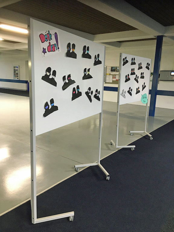 In der Eingangshalle der Kreisschule Mittelgösgen zeigen die Schülerinnen und Schüler der Klassen B2a und B2b, wie sie sich originelle Masken vorstellen können. Damit wollen sie das Durchhalten der Maskenpflicht unterstützen und gleichzeitig die gestalterischen Möglichkeiten im Umgang damit aufzeigen.